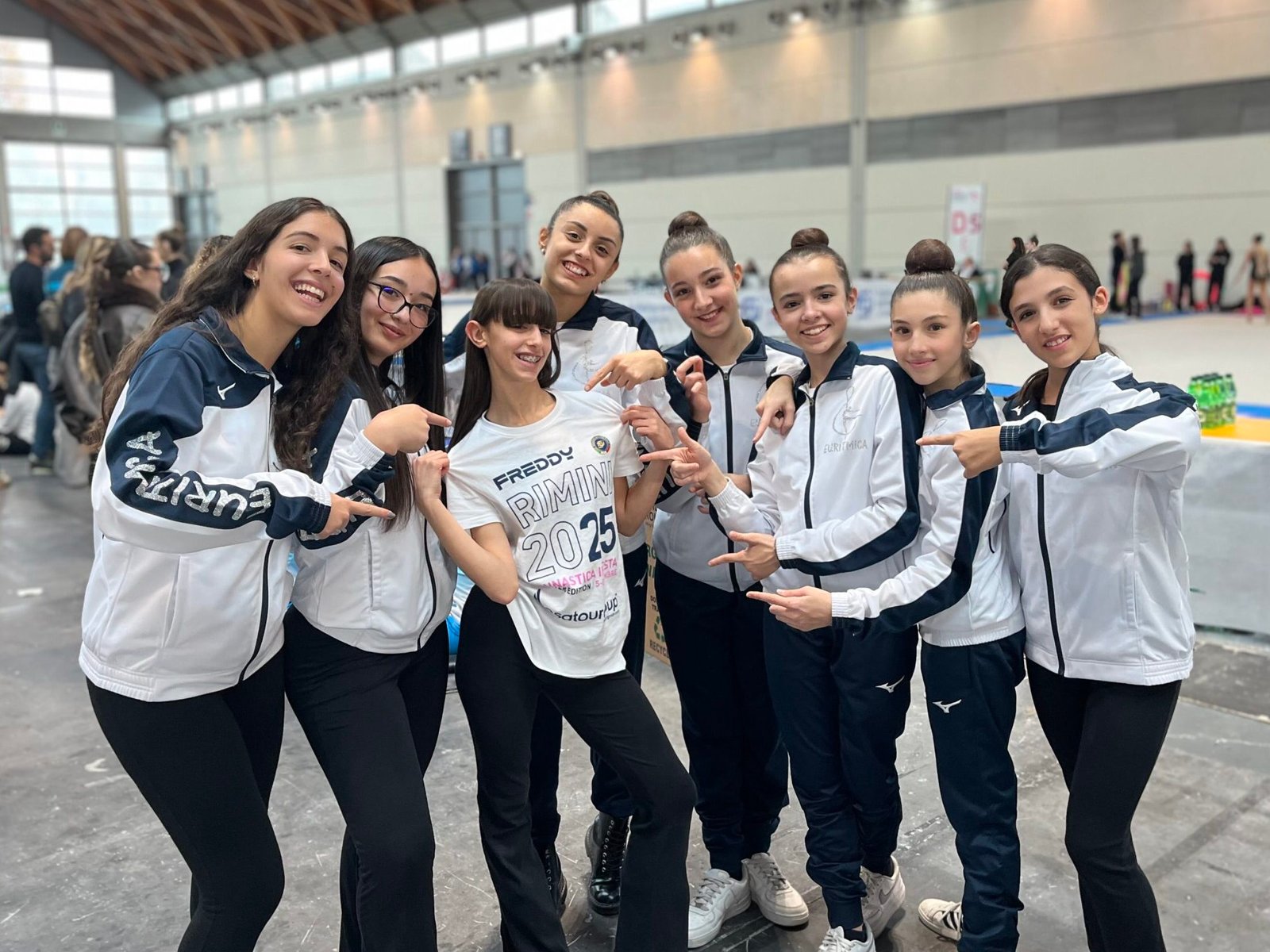 Grandi emozioni e successi per la Winter Edition del Campionato Nazionale FGI “Ginnastica in Festa”, che ha regalato all’EURITMICA un medagliere di grande prestigio: sette ori, un argento e tre bronzi. Un risultato maturato nella cornice della Fiera di Rimini, che dal 5 all’8 dicembre ha ospitato migliaia di atlete provenienti da tutta Italia. In questo contesto altamente competitivo, le otto rappresentanti dell’Euritmica sono scese in pedana con determinazione, tecnica e spirito di squadra, diventando protagoniste di prestazioni di assoluto rilievo.
